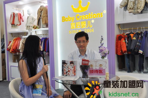 主持人:大家好,欢迎关注童装加盟网,这里是2013CBME的展会现场为大家带来的报道,今天我们要采访的是皇后婴儿的汤总。汤总,您好!