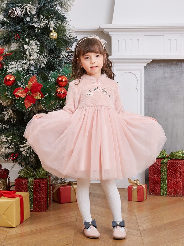 这款连衣裙很是可爱,而且很具有民族风的气质,领口的设计很是简约大方,胸口处的刺绣设计处处彰显出中国风的特色,粉色颜色甜美而可爱,采用优质的面料制作而成,穿在身上舒适简约,网纱裙摆的设计体现出小公主一样的感觉,搭配一双小皮鞋,整体造型俏皮可爱,将孩子的天真可爱穿出来。