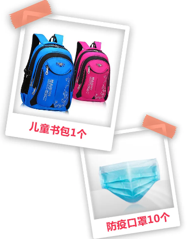 即可获赠儿童书包1个+防疫口罩10个