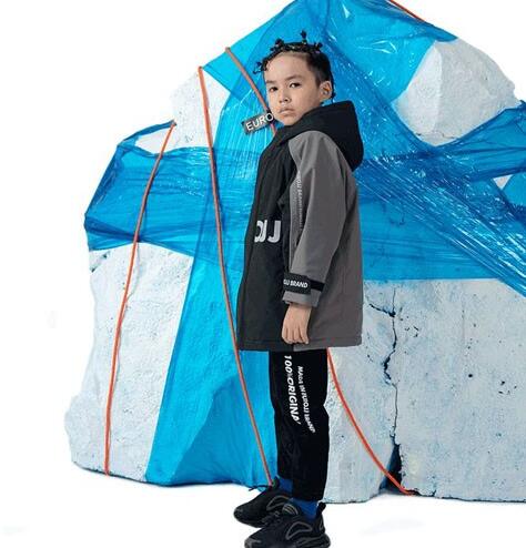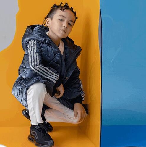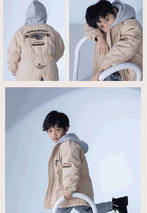 卡其色是气质的绝配,显得小男孩气场十足,搭配浅灰色连帽,又颇有文艺气息。
