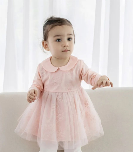 春日花园盛开娇艳的花朵,荷叶边与褶皱的工艺,增添了无尽的甜美和优雅,细腻的格子结合闪光网纱,是永不过时的流行元素,安静的色彩,更显小公主的灵气。