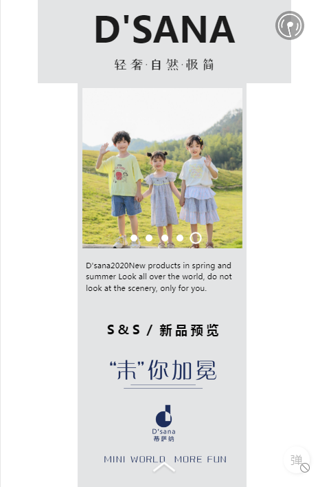 此次的2020春夏新品发布会,是一次前端潮流的视觉盛宴,蒂萨纳D'sana童装以自然、轻奢、极简为主,结合儿童成长,为他们打造合身的春夏新衣,像初升的太阳般茁壮成长,敢于追逐自己的梦想!