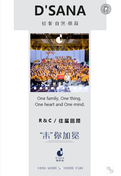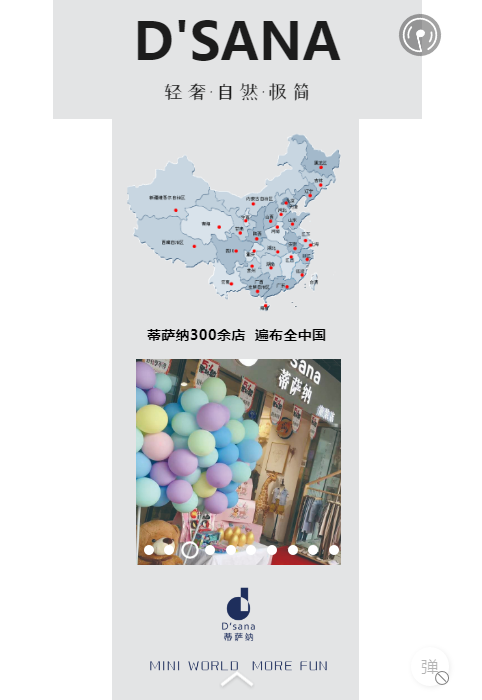 作为拥有一支经验丰富、放眼国际的业界团队,蒂萨纳D'sana品牌集童装设计、生产、销售及品牌运营为一体,一直极具创新力,带领着家人们不断前进,一次一次的扩大目标,目前在全国各地已开设了三百余家专卖店,为众多家庭们提供了品质的守护。