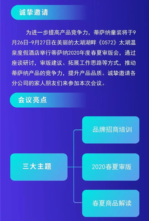 高能预告!蒂萨纳2020年度春夏审版暨招商战略会议即将开幕!诚邀分公司的家人朋友们前来参加本次会议!