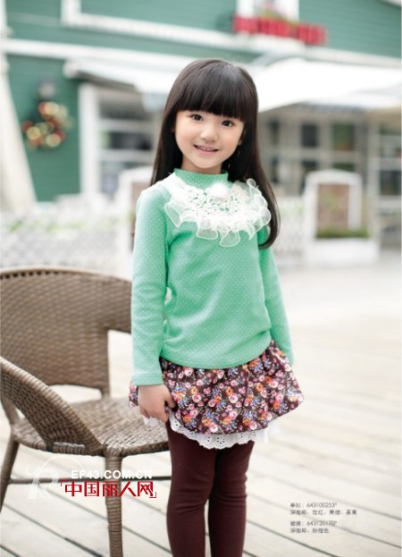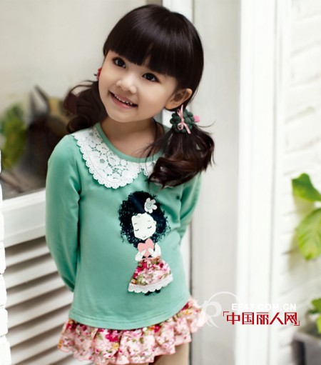 绿色长T作为打底,蕾丝BB领点缀,拼接小碎花裙摆,像是一件连衣裙款式,可爱的卡通女孩图案,这样的单穿就很时尚了,妈妈们也可以帮孩子准备一件小外套款式,***是短款的更好了,很甜美的装扮。