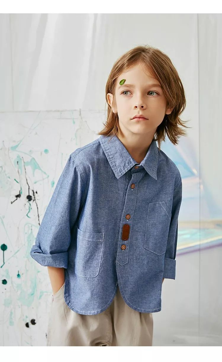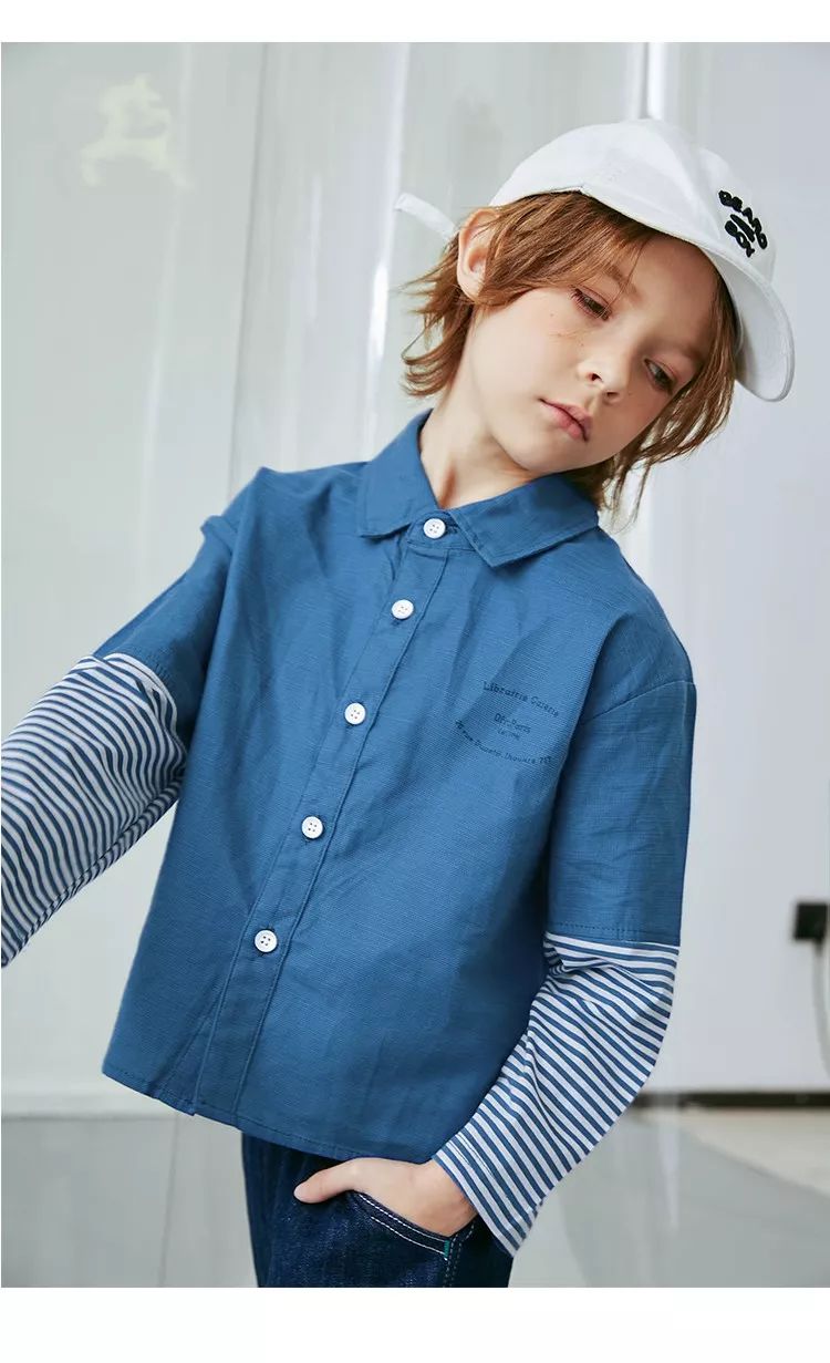 植木儿童2020新款宽松Polo衫假两件卫衣