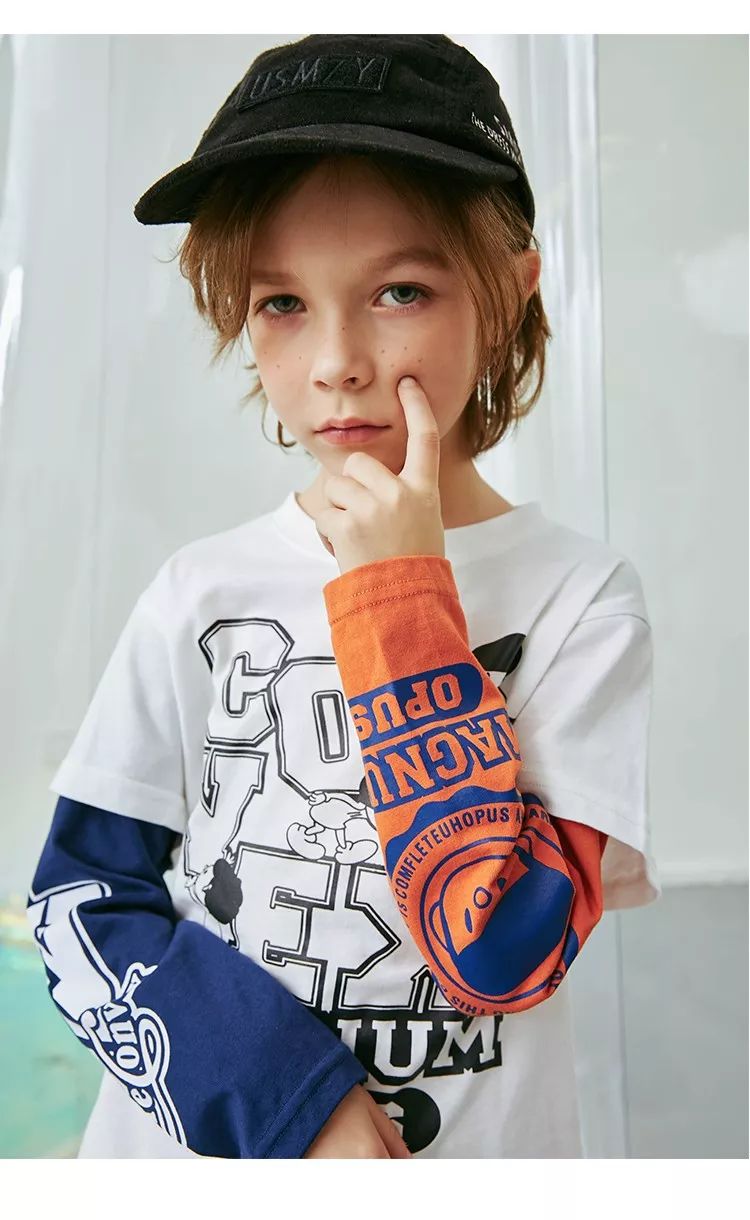 左右不对称袖,图案街潮,蓝橙鲜艳