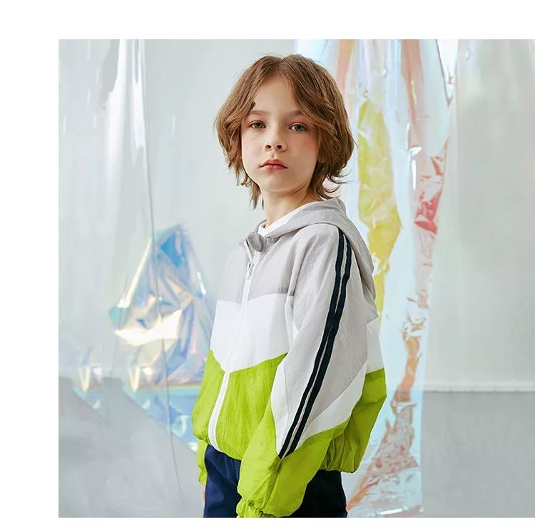 植木儿童撞色男童连帽拉链外套