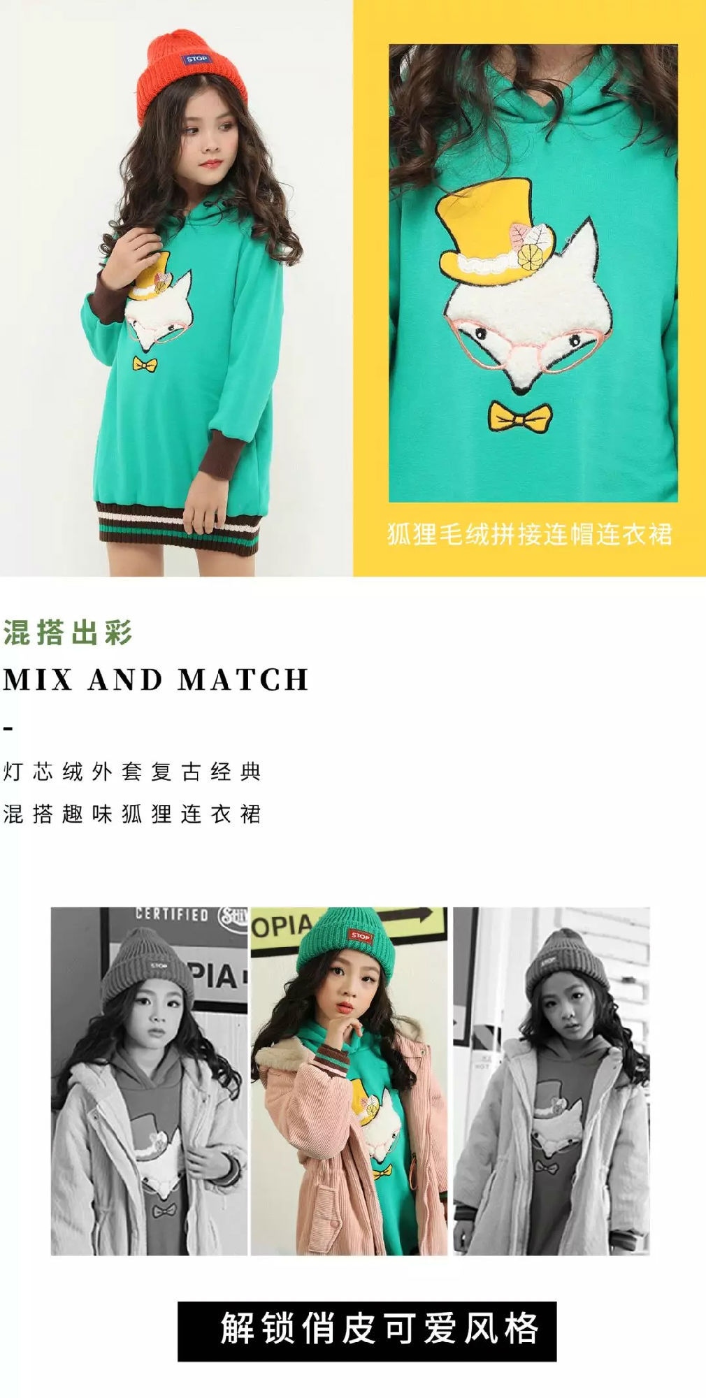 传递时尚潮态度,混搭出彩,灯芯绒外套复古经典,混搭趣味狐狸连衣裙。