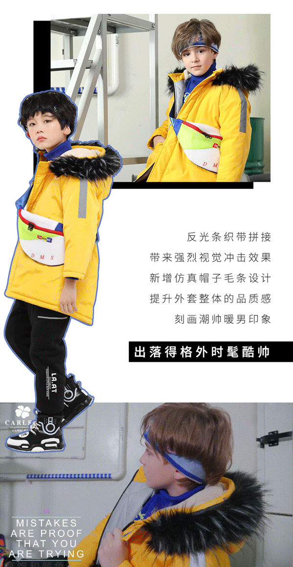 带来强烈视觉冲击效果,新增仿真帽子毛条设计,提升外套整体的品质感,刻画潮帅暖男印象,出落得格外时髦酷帅。