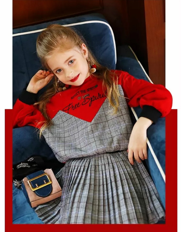 一款时尚格纹卫衣,格纹的经典魅力,搭配百褶腰裙增添了浓厚的手工匠意,整套穿着洒脱率性。