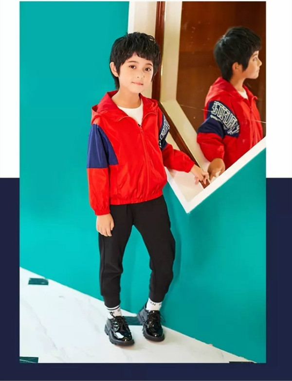 一款大红色的连帽外套,融入运动元素,瞬间变得充满活力,内搭白色或者藏青色单衫,在搭配运动针织裤,运动充满活力。