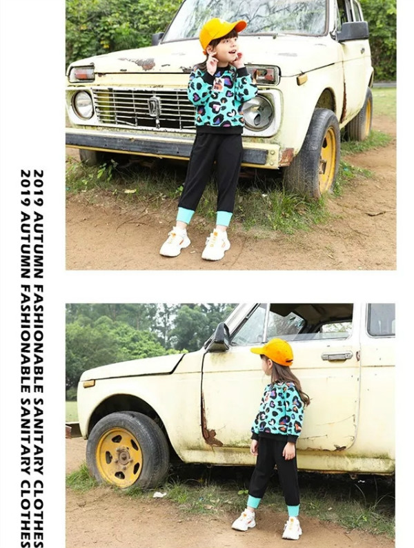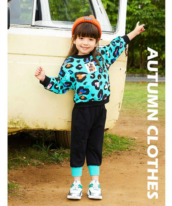 大热的休闲套装,纯棉的奥戴尔针织面料,手感舒适;融入当下火爆的豹纹图案,彩色的豹纹更加俏皮可爱,点缀考拉贴布图案,搭配撞色罗纹休闲裤,整体俏皮不失时尚。
