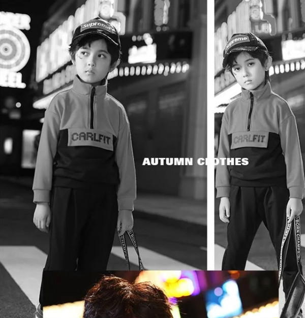 孩子喜欢酷酷的衣服,满心欢喜挑一套卫衣吧!在操场上飞驰的样子,真是太棒了~