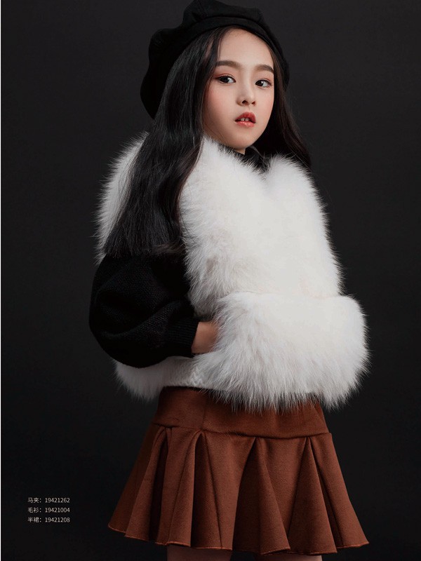 过年的穿搭,当然要有时髦范儿。JOJO童装这件女童皮草马甲,采用纯白色的皮草面料,蓬松感满满,穿着起来也非常的保暖舒适。搭配上黑色的高领打底衫+焦糖色的荷叶边半身裙,一双黑色的小短靴,穿出满满的时尚气息。