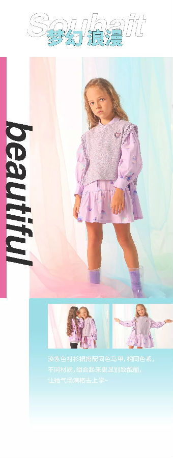 水孩儿春装新品摆脱冬天的沉闷与严肃,加入了更多柔和清新的颜色及浪漫轻快的元素,让不同的衣服搭配在一起,都有新的风格趣味,也留给了家长更多的搭配空间。让孩子再出门时,每一天都穿出新风格,元气满满!