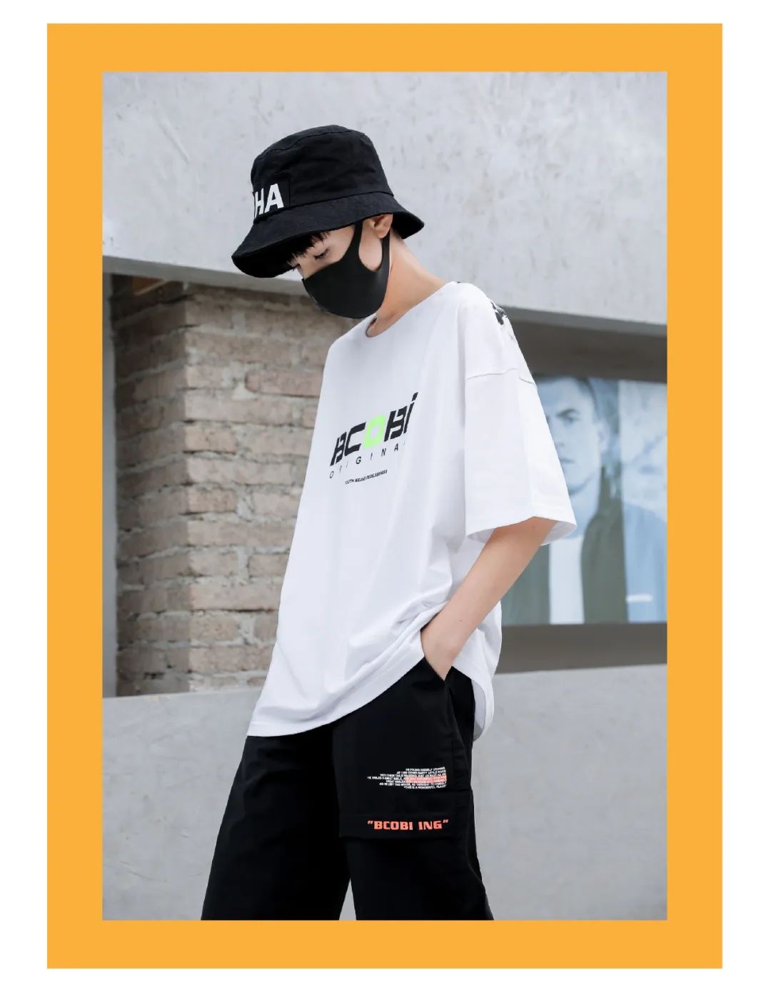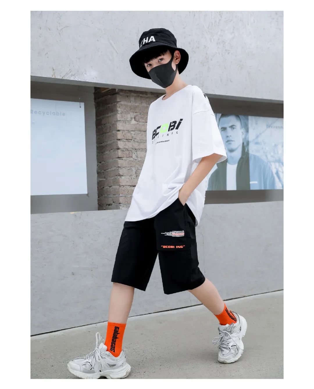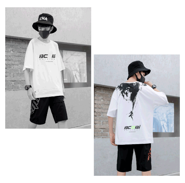 国潮风T恤,采用传统的水墨画印花工艺,OVERSIZE版型,时尚有型。休闲中裤,撞色的斜式英文印花,不对称裤型彰显个性与创新理念。