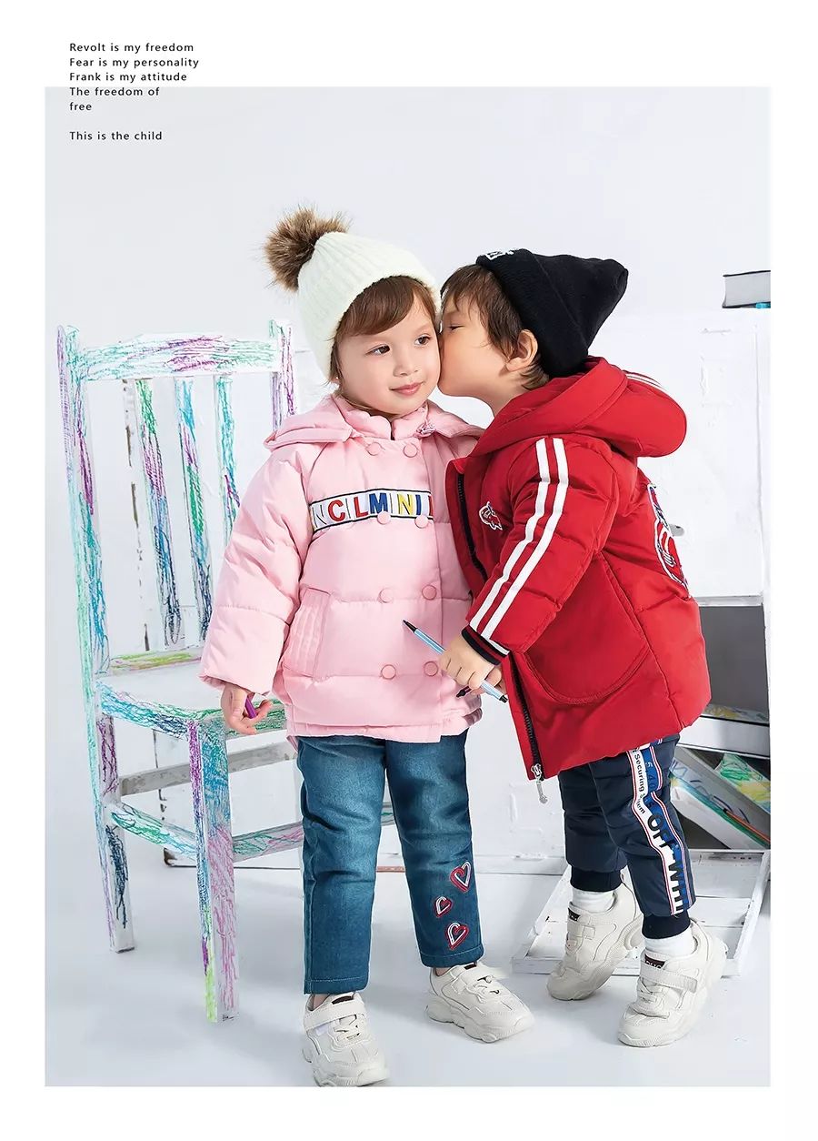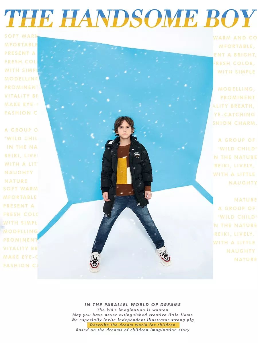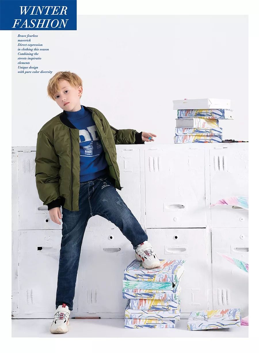 酷酷的棒球服版型,底部间线90%国标充绒,采自白鸭腹部最柔软蓬松的绒朵,温暖舒适,袖子根据臂部弯曲原理设计,更大程度上满足了孩子活动灵便的需求,搭配活力牛仔,释放男孩张扬天性。