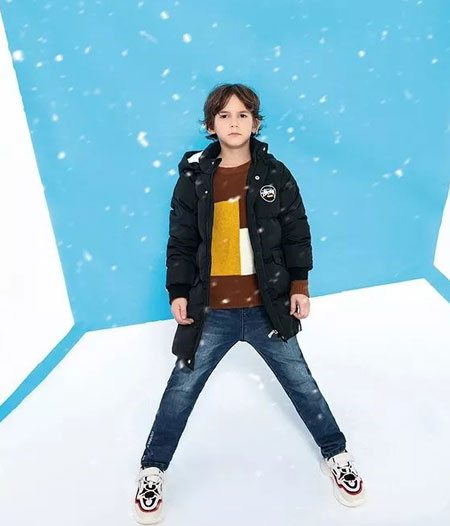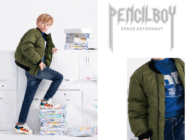 酷酷的棒球服版型,底部间线90%国标充绒,采自白鸭腹部最柔软蓬松的绒朵,温暖舒适,袖子根据臂部弯曲原理设计,更大程度上满足了孩子活动灵便的需求,搭配活力牛仔,释放男孩张扬天性。