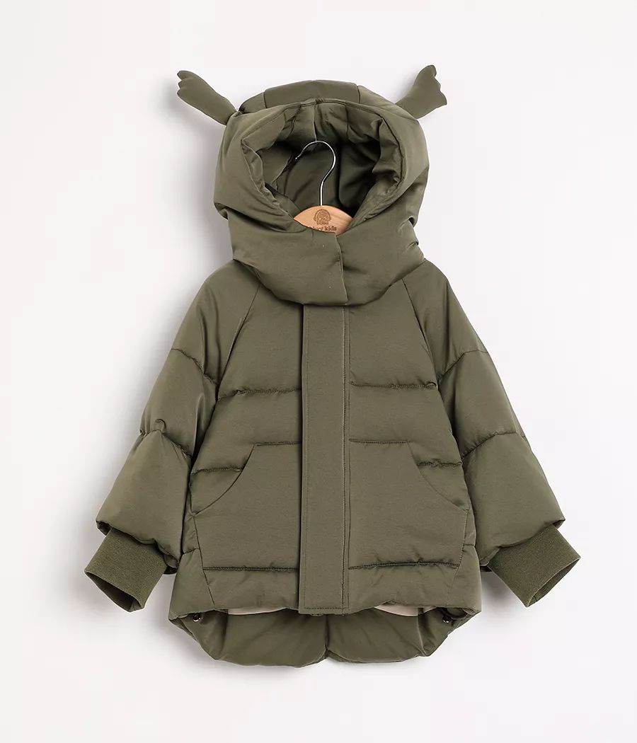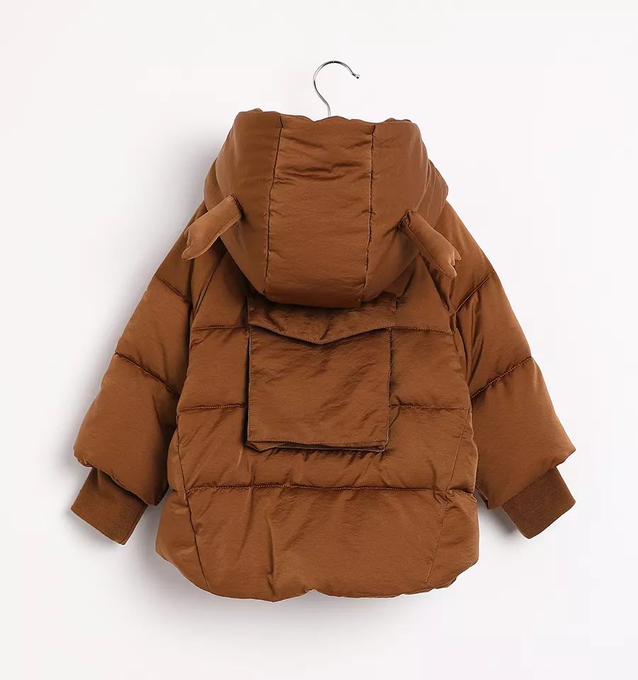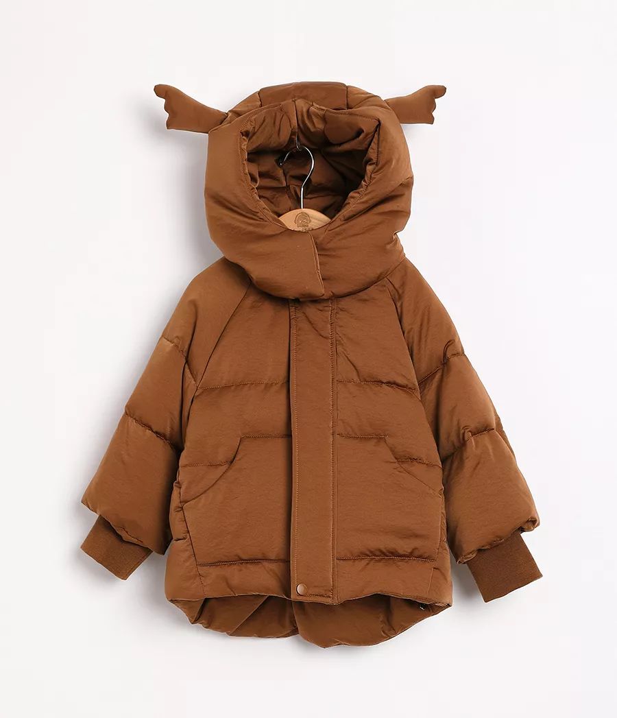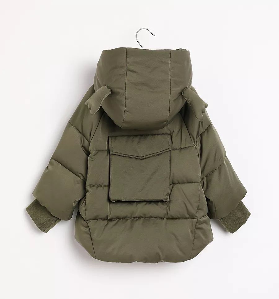 趣味中长款棉服,中性风的两个颜色让穿搭有了更多的可能性。帽子上动物角设计萌趣吸睛,十分可爱。后背大大的储物袋,装满宝贝心爱之物,贴心设计方便实用。
