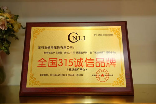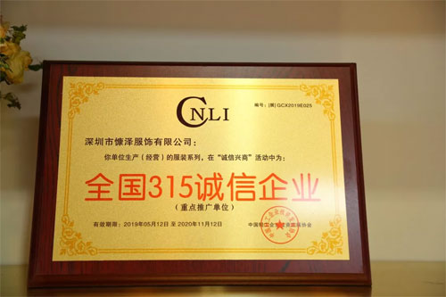 我们共享·共进·共赢,2019年,是我们获得长足进步的一年,不但设计、品质、工艺、服务等方面有所提升,同时慷泽服饰荣获由。