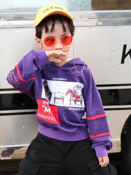 饱和度高的单品,视觉冲击力强,可以给人留下深刻的印象,能够让造型更出挑。家长可以为孩子们选择一款饱和度高的单品呈现潮感的童装造型。拉斐贝贝童装品牌的这件紫色连帽卫衣,颜色出挑,饱和度高,男宝宝穿搭起来潮感有范,给人强烈的视觉冲击。搭配一条黑色的工装裤,颜色经典百搭,穿起来个性有型。在这个穿搭基础上,给宝宝佩戴一顶黄色的棒球帽,丰富了造型的色彩,避免单调!