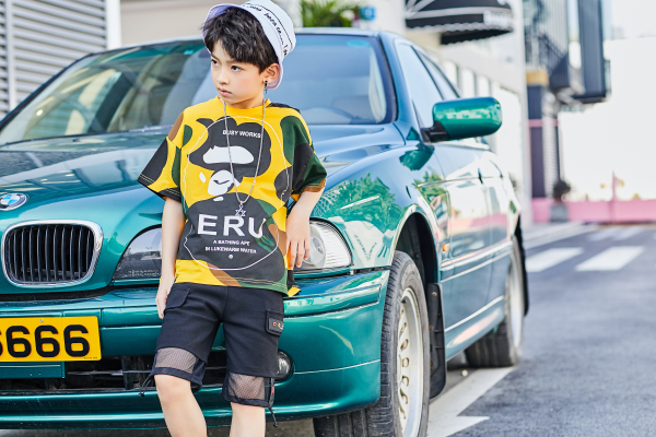 还有黄绿黑色交织的迷彩花纹短袖也是非常不错的选择。搭配上拉斐贝贝童装品截网纱的短裤穿搭,让穿搭更加透气舒适,在这个夏季,拉斐贝贝已经为孩子们准备好了时尚的穿搭,你还不快来看一看?