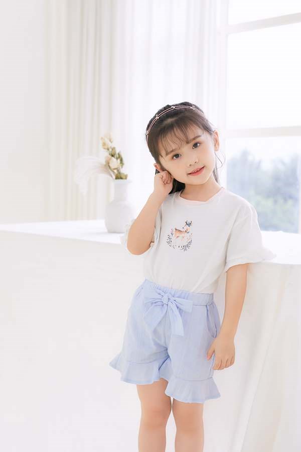 女孩子是家里的掌上明珠,是可可爱爱的小公主,糖果色的穿搭就很是好看。白色小鹿印花短袖与天空蓝收腰短裤搭配出强烈的活泼画风。蝴蝶结的松紧裙腰设计,轻松调节腰身,充满童趣的同时又凉爽舒适。