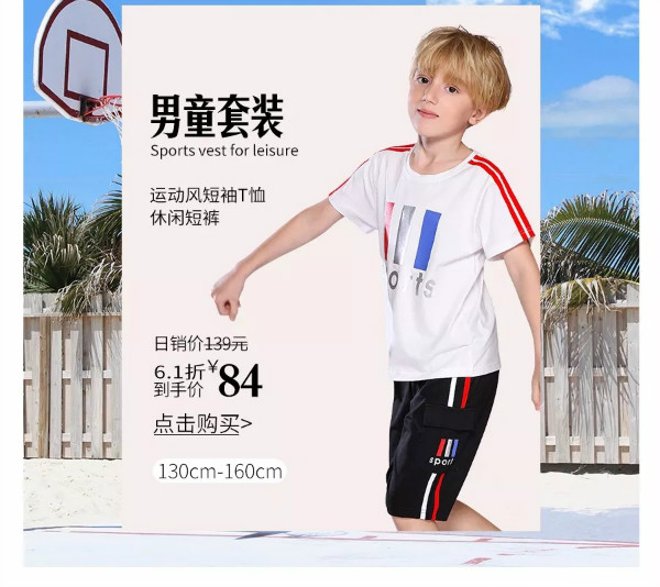 搭配费时间?套装轻松搞定!夏季孩子免不了嬉戏打闹,一套酷酷的运动套装让孩子舒适愉快的玩耍。