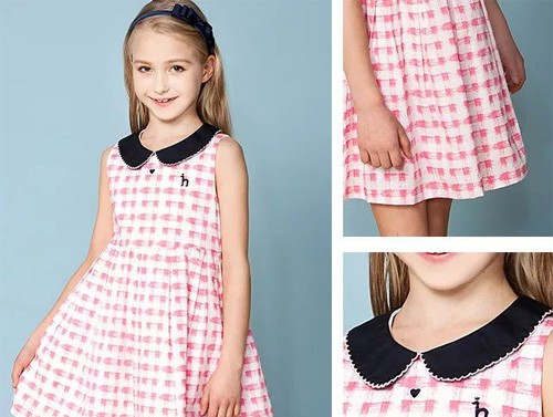 拼接元素棉布裙点缀上别致的卡通印花,装点每个小女孩的公主梦,高腰线条设计拉长身材比例,经典花型时尚复古时尚,条纹拼接修饰,俏皮可爱。